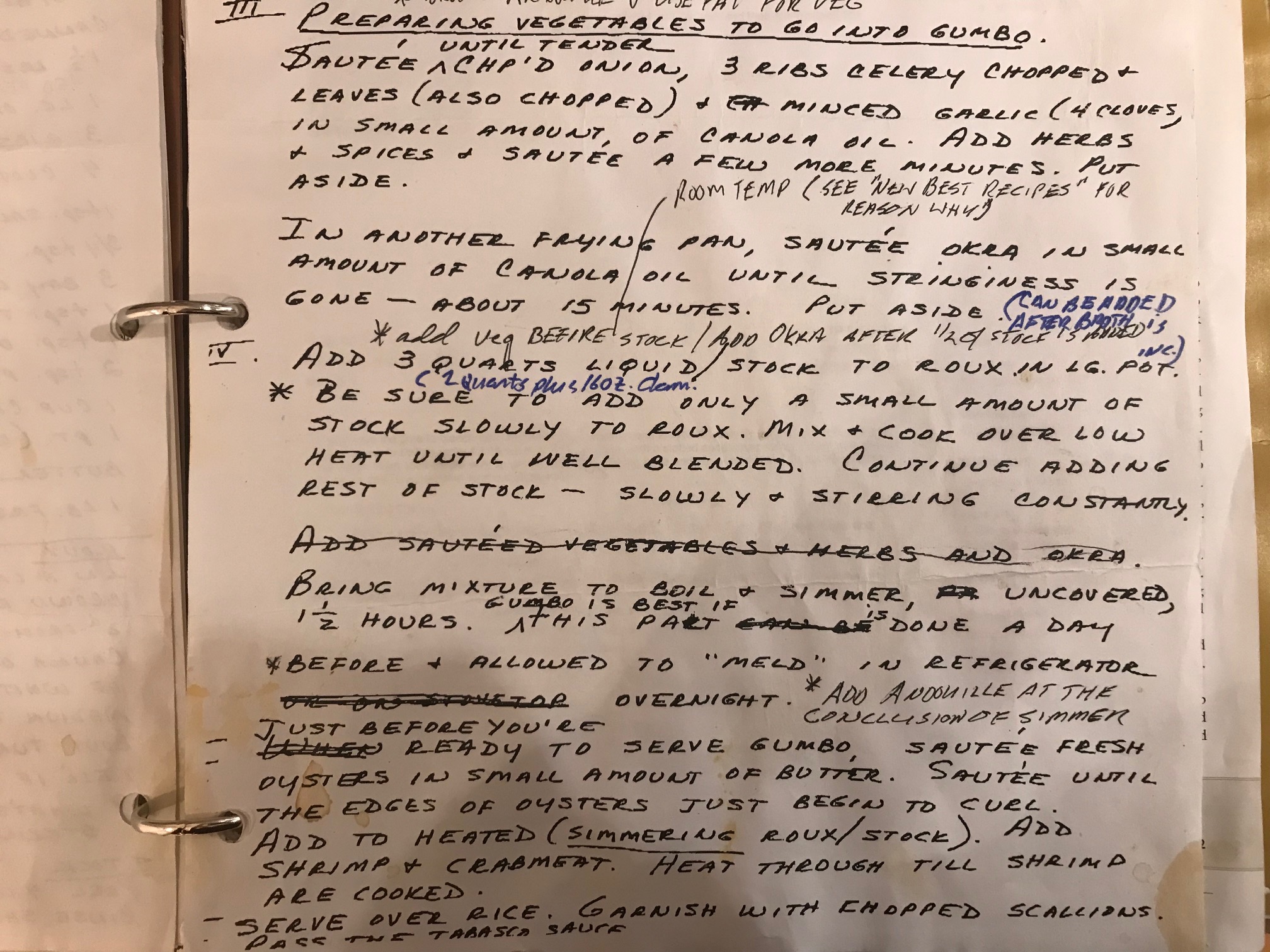 "Dixie, Ann, Togar, Ken and Judy moved to Baton Rouge the summer of 1962. Ann of course was a West Texas girl and we had lived in Fayetteville, AR for seven years. She had never had all the fabulous Louisiana seafood dishes and had certainly never made them. One of the other LSU coaches’ wives, Adene Didier, was a wonderful cook and had Dixie and Ann over for gumbo, a dish both of them immediately fell in love with! Sometime later, Dixie and Ann were going to have company from out of town. Ann wanted to make Gumbo, so she called Adene and received the recipe and very specific instructions over the phone. The gumbo was a welcomed addition to Ann’s recipe box."